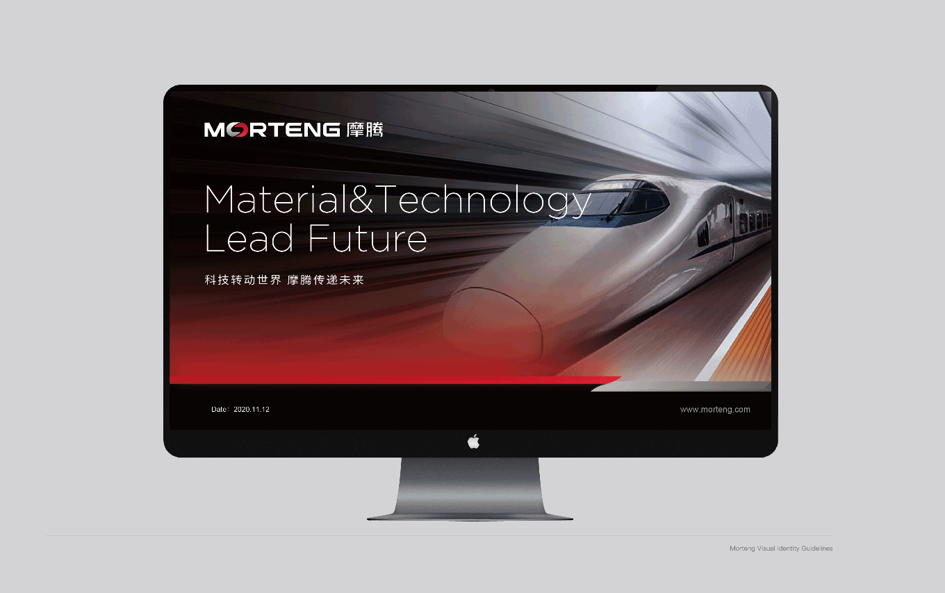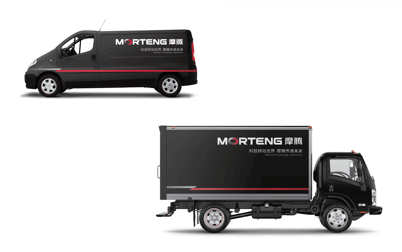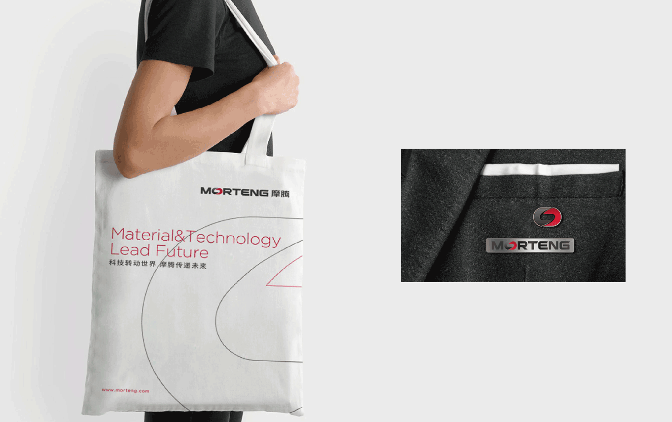 MORTENG 英文字体标识,将字母“O” 作为主要识别点,形成了一个无限循环转动的环形,其不仅具有摩腾科技的产品属性——象征滑环、碳刷等产品的运作特性;其次,图标的负形也巧妙地形成了“能源符号” 的图形感,象征着摩腾在风电、传动、线缆等能源科技领域所具有的“无限能量”。在颜色上也选用“能量感” 极强的红色作为主要识别色,使摩腾品牌在行业领域中脱颖而出。